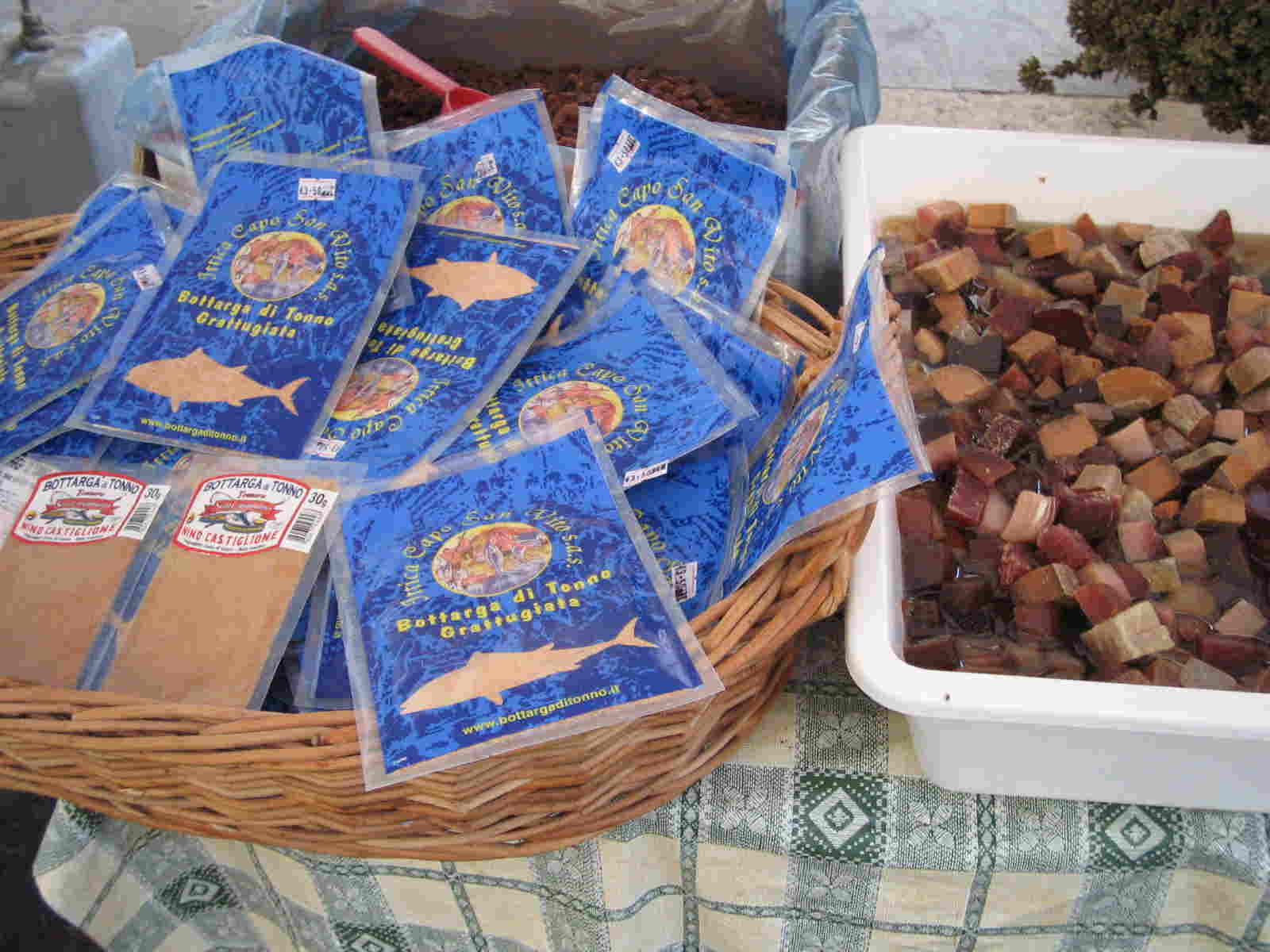 右はまぐろの卵巣の”カラスミ”ボッタルカ。真空パックにして好きなだけ量り売りもしてくれます。
