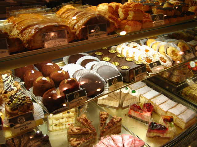 ほとんどがカフェの中にケーキのショーケースがある、