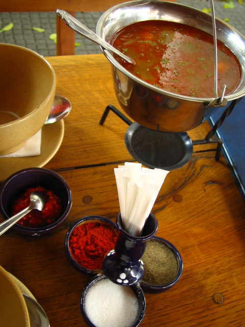 グヤーシュをこんな器にぶら下げて持ってきてくれます。