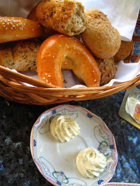 パンも穀物を感じる香ばしいものが。バターがかわいい。