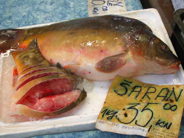 魚市場もあります。このヌルッとしたのは、、、淡水魚?ザグレブは内陸なのでありえるかも。