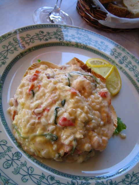 エビのリゾットは上品なお皿に貝殻に盛られて出てきました。