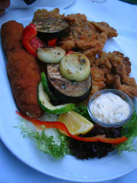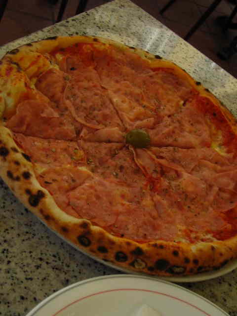 市場近くのピザ&ケバブレストランで、クロアチアプロシュート(ハム)の