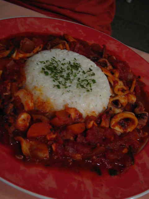 イカのトマト煮込み。スパイスが効いていて美味しい。