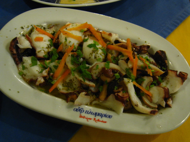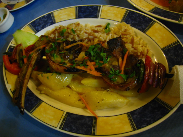 ラムの骨付きスヴラキ!串焼きですね。皿からはみ出そう、、、、。
