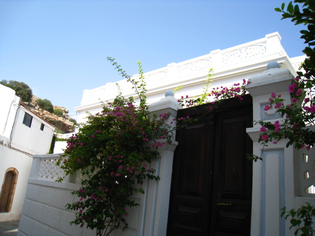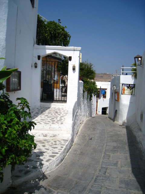 リンドスの城下町(笑)は白い壁で統一され、石畳がとっても素敵。