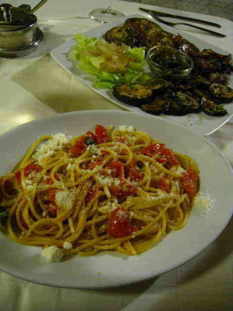 ルッコラとツナのサラダやオリーブたっぷりのパスタも。