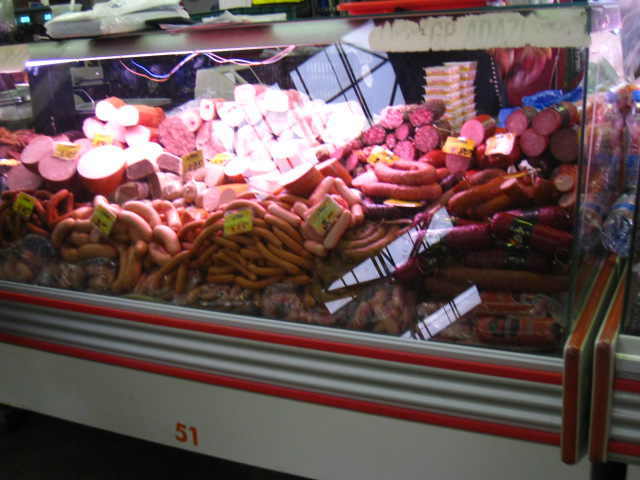 上は肉の燻製いろいろ。そしてソーセージ。うまいんです、これが、、、、。