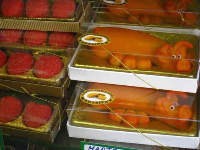 味付き、チョコレートがけしたマジパンも売られていますが、