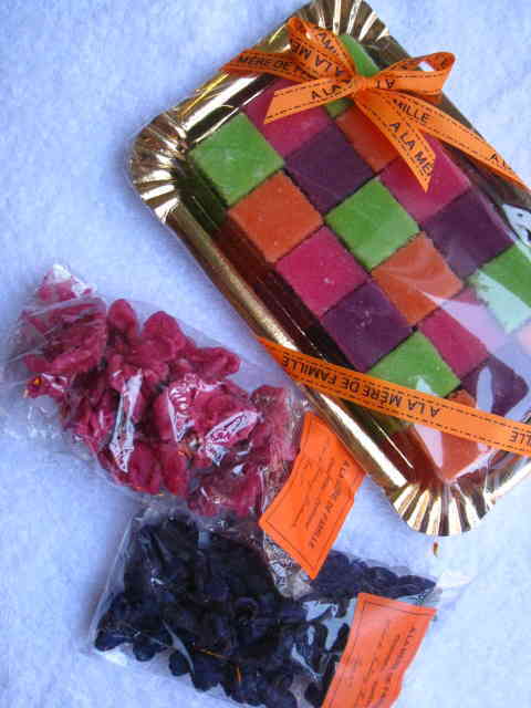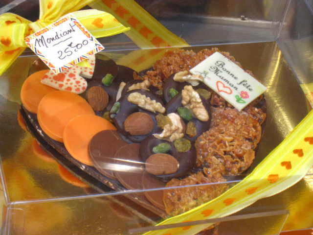 パートドフリュイ、マンディアン、アマンドショコラ、ロッシェ等の詰め合わせ。
