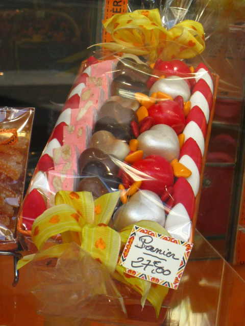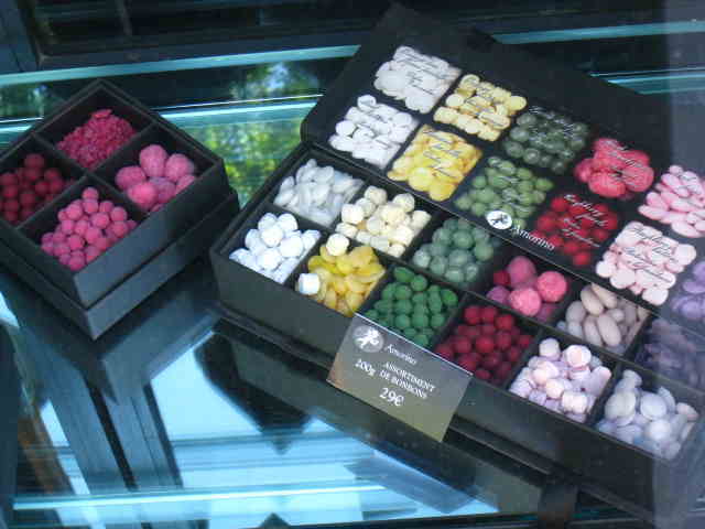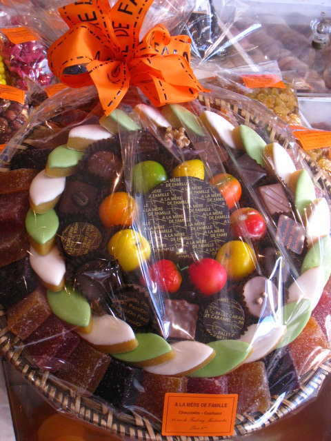 ウインドウに飾られた砂糖菓子詰め合わせ。