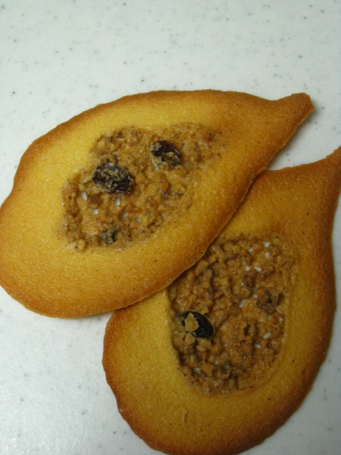 大きいラングドシャの真ん中にヌガー生地が入っています。