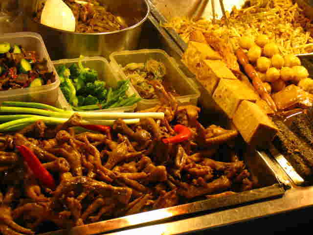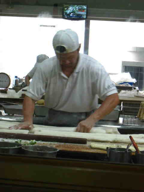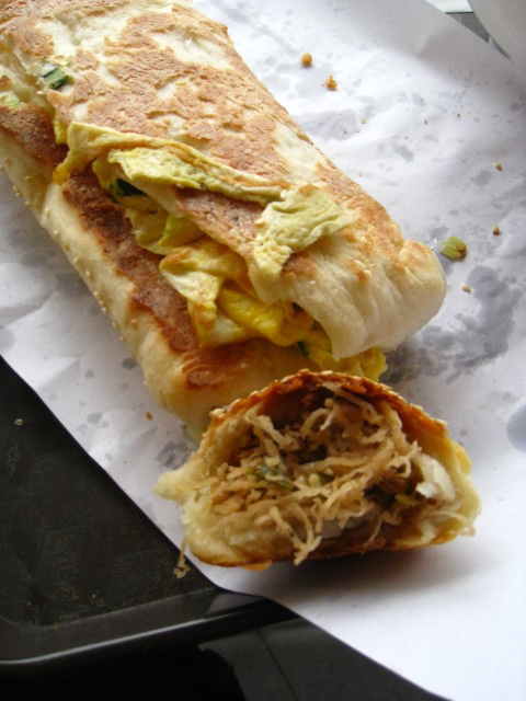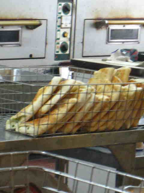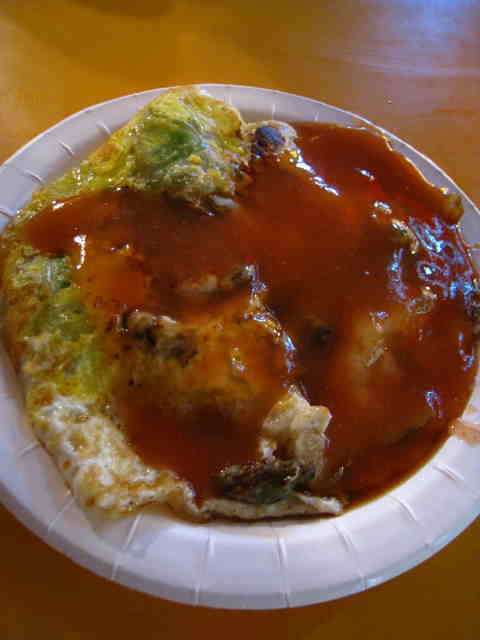 頼むと辛いソースをかけ、4つ折にしてくれます。あつあつ!