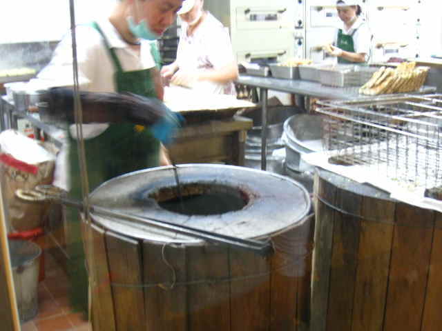 タンドリーみたいに熱い釜の内側に貼り付けて焼きます。