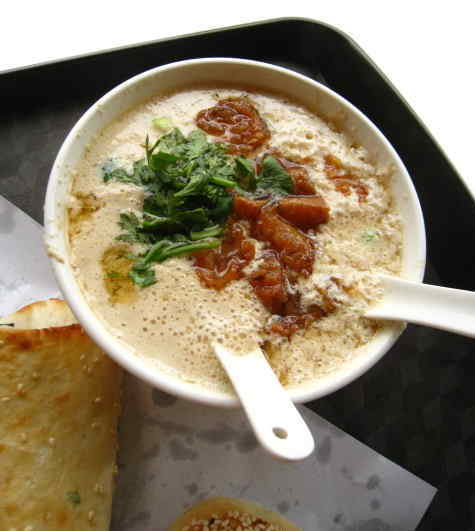 豆乳が温かいスープの中で固まってふるふるっとしています。